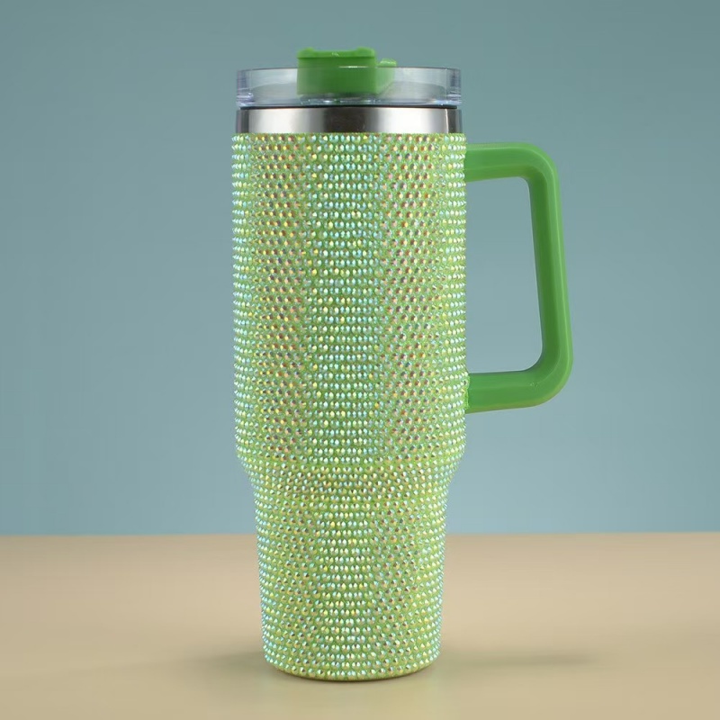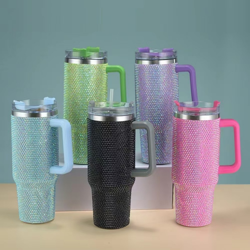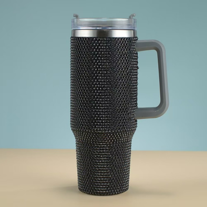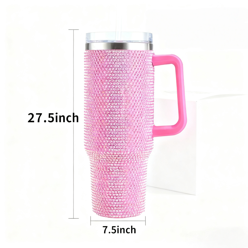 • 40oz Bling Rhinestone Insulated Tumbler with Handle & Straw - Sparkly Design for Fashion-Forward Home & On-the-Go | Keep Drinks Hot/Cold | Must-Have Glam Kitchen & Lifestyle Accessory