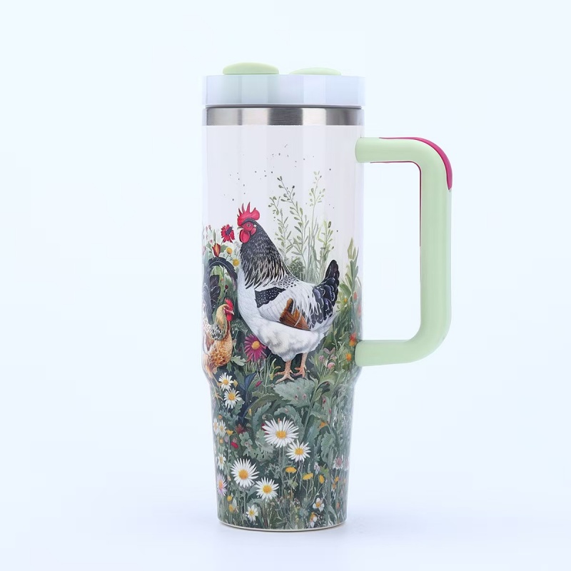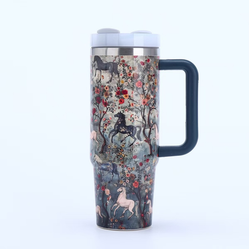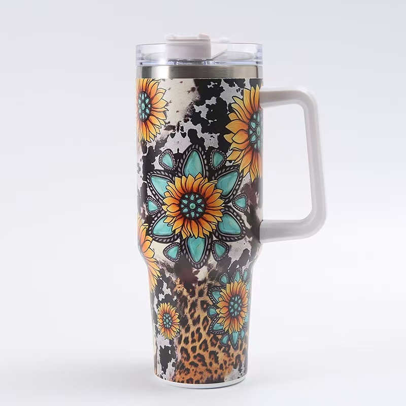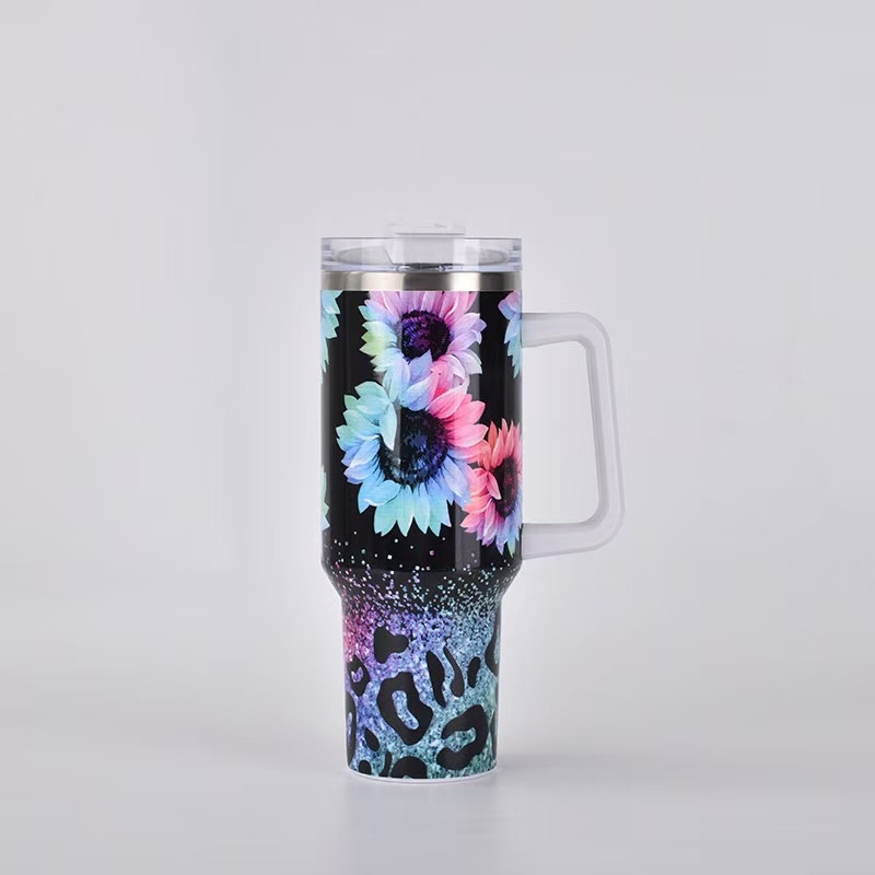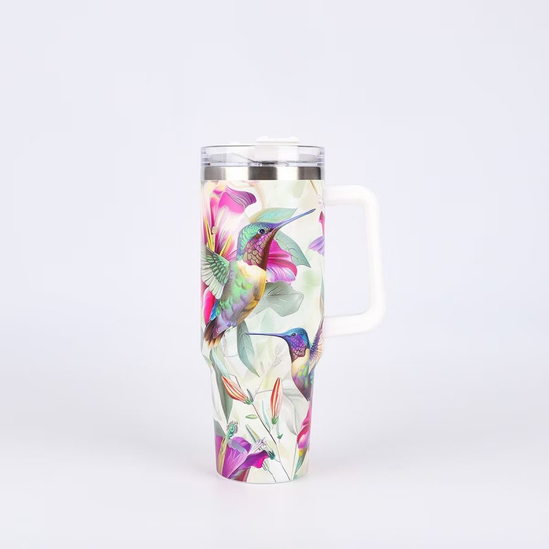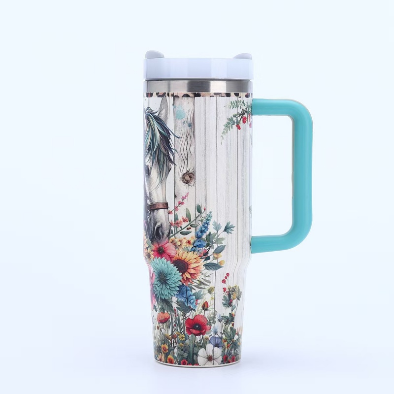 40oz Insulated Tumbler with Handle - Vibrant Themed Designs (Animals, Florals, & More) | Keep Drinks Hot/Cold | Must-Have Stylish Kitchen & Lifestyle Essential for Home & On-the-Go
