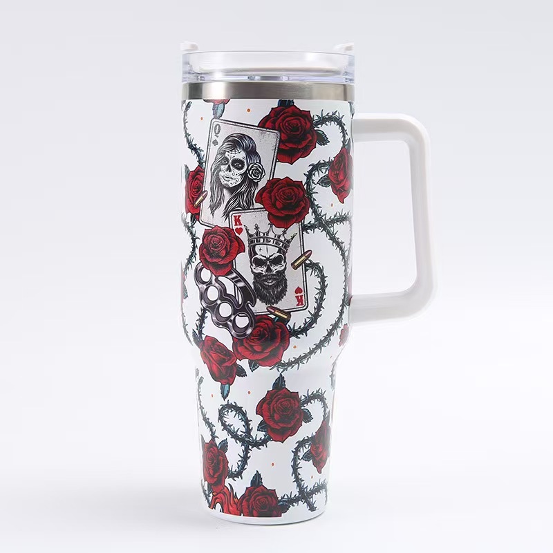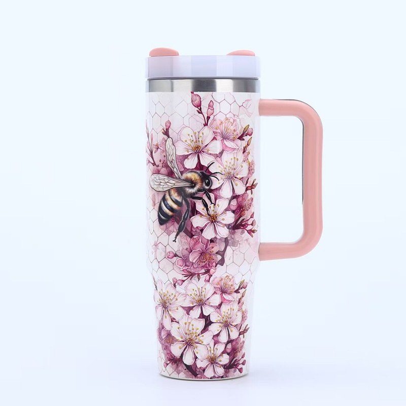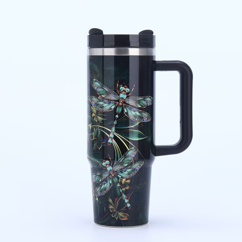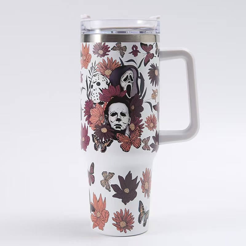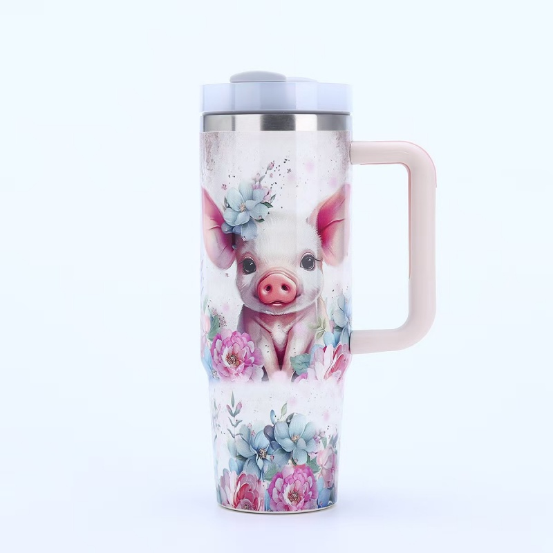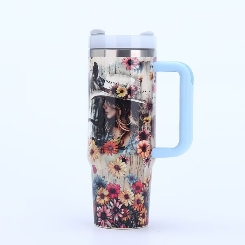 40oz Insulated Tumbler with Handle - Vibrant Themed Designs (Animals, Florals, & More) | Keep Drinks Hot/Cold | Must-Have Stylish Kitchen & Lifestyle Essential for Home & On-the-Go