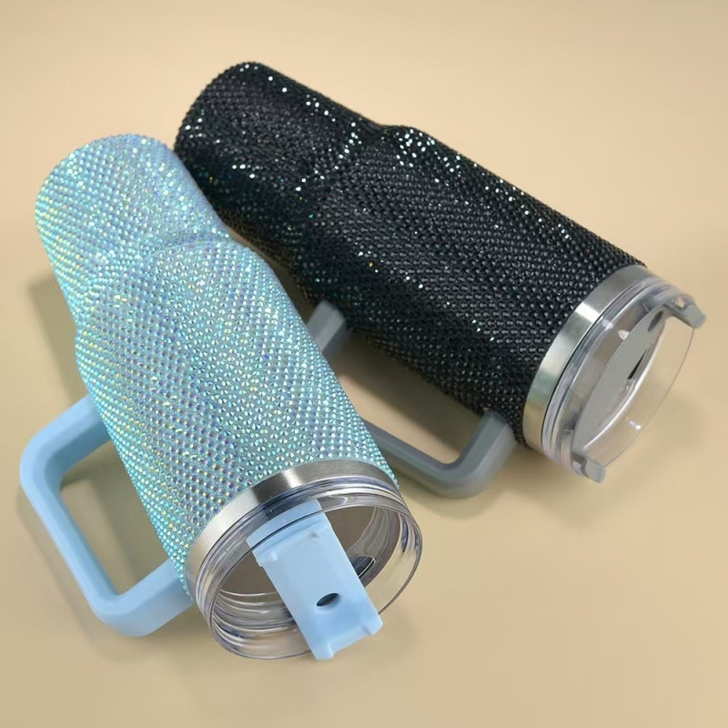 40oz Bling Rhinestone Insulated Tumbler with Handle & Straw - Sparkly Design for Fashion-Forward Home & On-the-Go | Keep Drinks Hot/Cold | Must-Have Glam Kitchen & Lifestyle Accessory