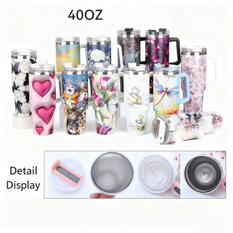 40oz Insulated Tumbler with Handle - Vibrant Themed Designs (Animals, Florals, & More) | Keep Drinks Hot/Cold | Must-Have Stylish Kitchen & Lifestyle Essential for Home & On-the-Go