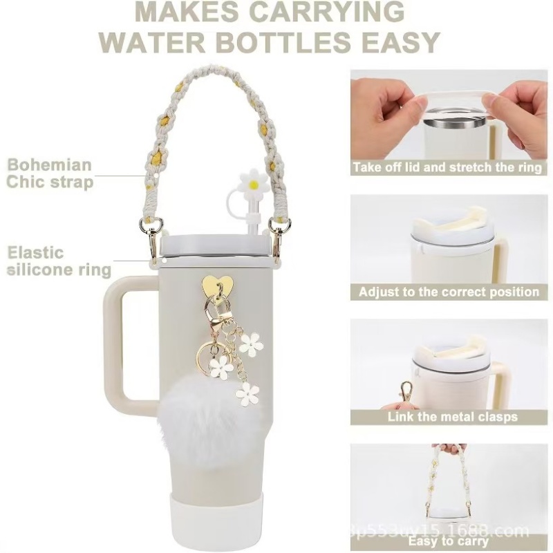 Stanley Cup Accessories, Ruffled Charm - Fashionable portable beverageware with unique Bohemian accents, suitable for both home use and outings | Must-have fashionable kitchen and lifestyle essentials (without cups and straws)