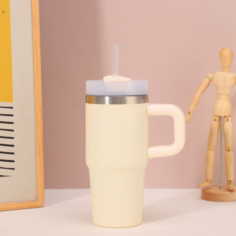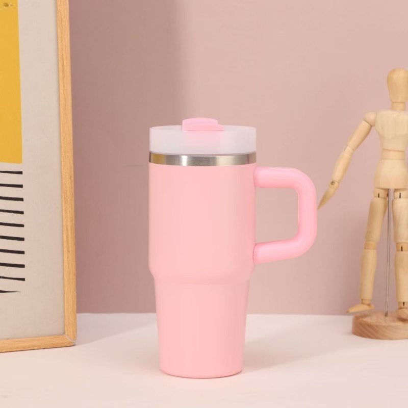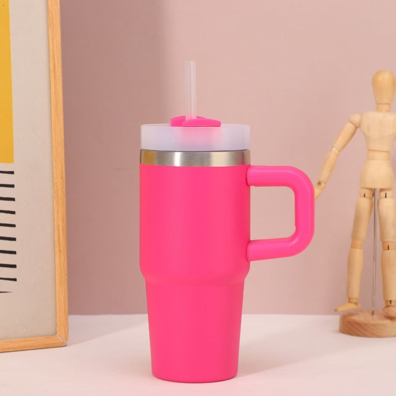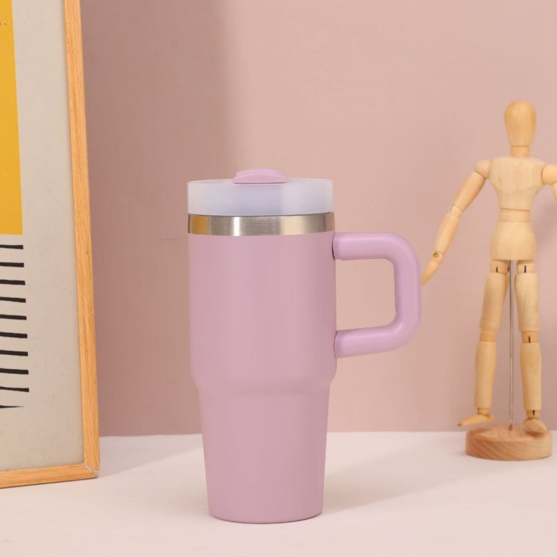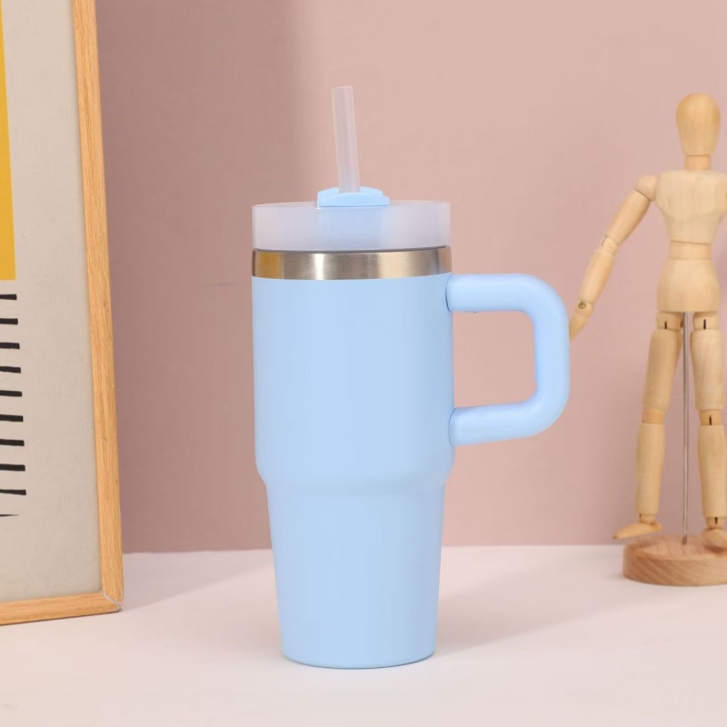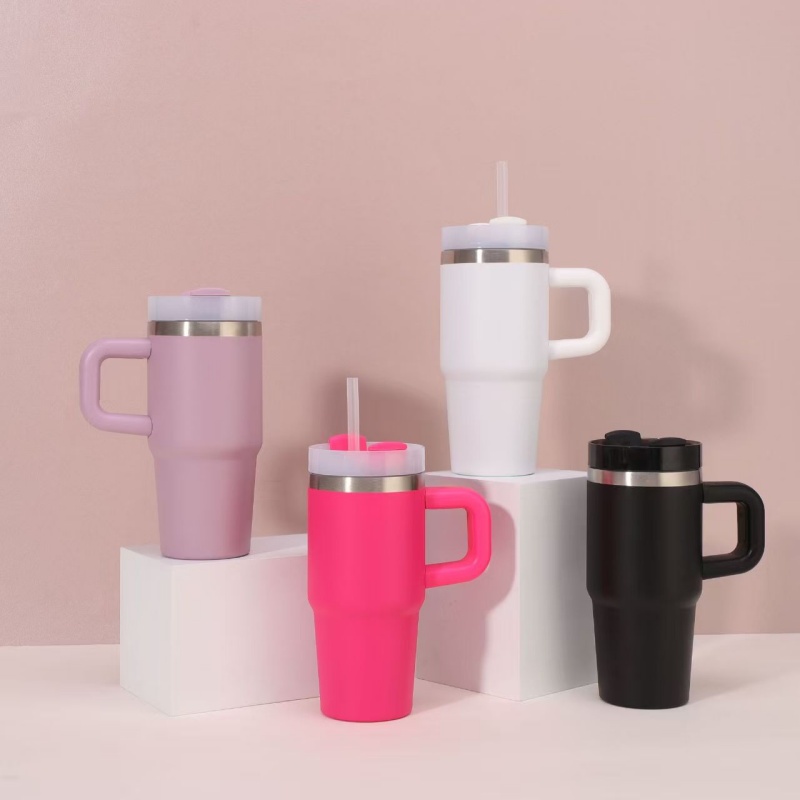• 14oz Rainbow Pastel Insulated Tumbler with Handle & Straw - Aesthetic Colorful Mug for Viral Hydration & Cozy Vibes