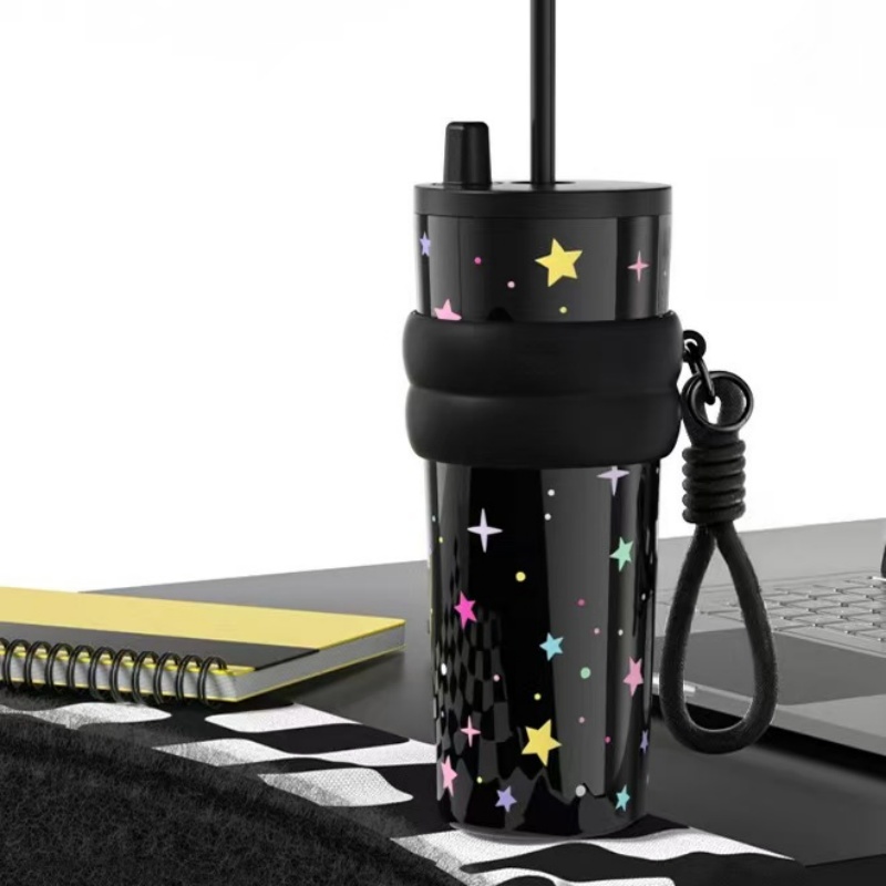• 710ml Insulated Tumbler with Straw & Cute Cloud Charm - All-Day Hot/Cold Insulation | Trendy Design for Home & On-the-Go | Must-Have Stylish Kitchen & Lifestyle Essential